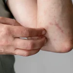 • بثورات قرمز و خارش‌دار در ناحیه عفونت
